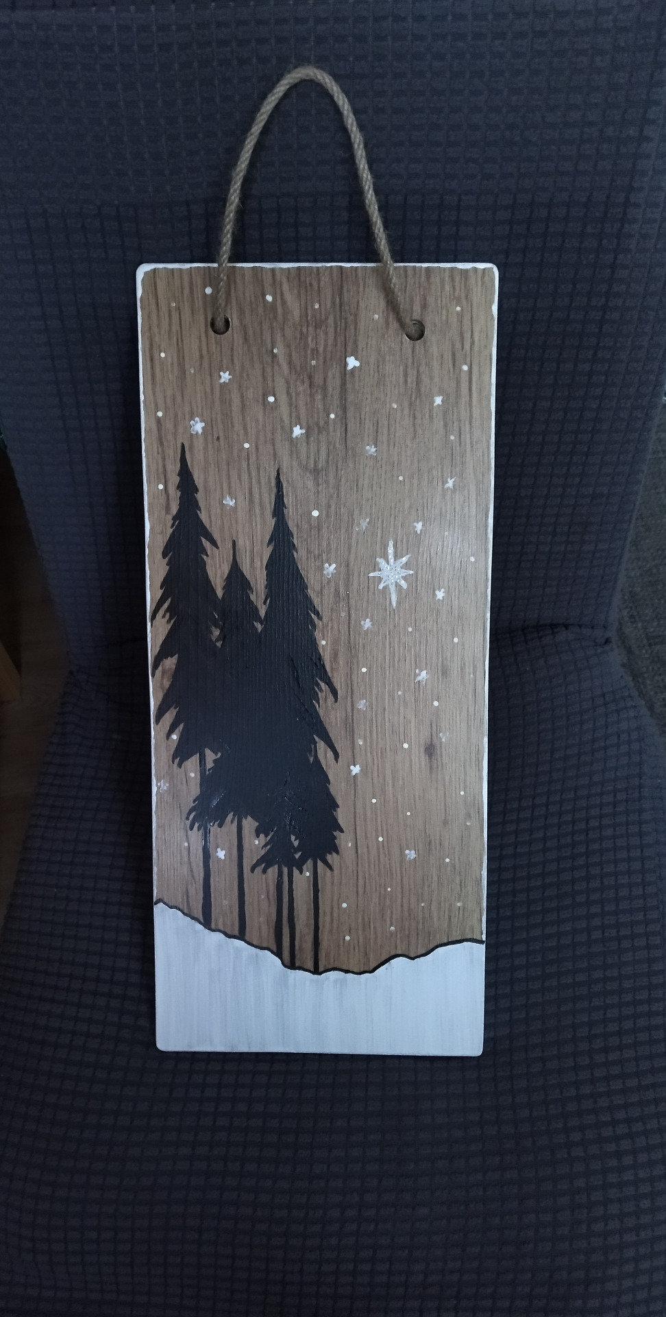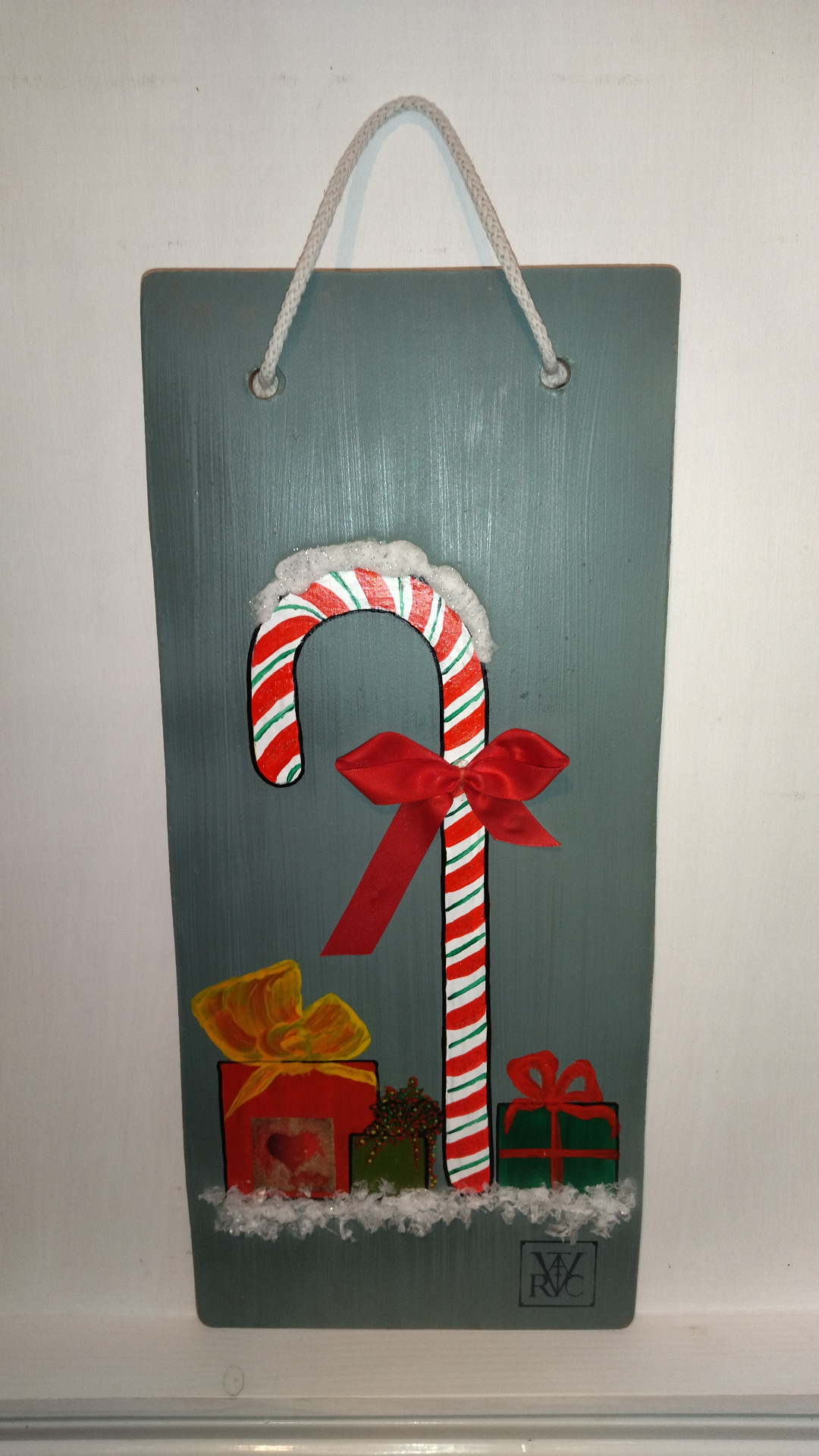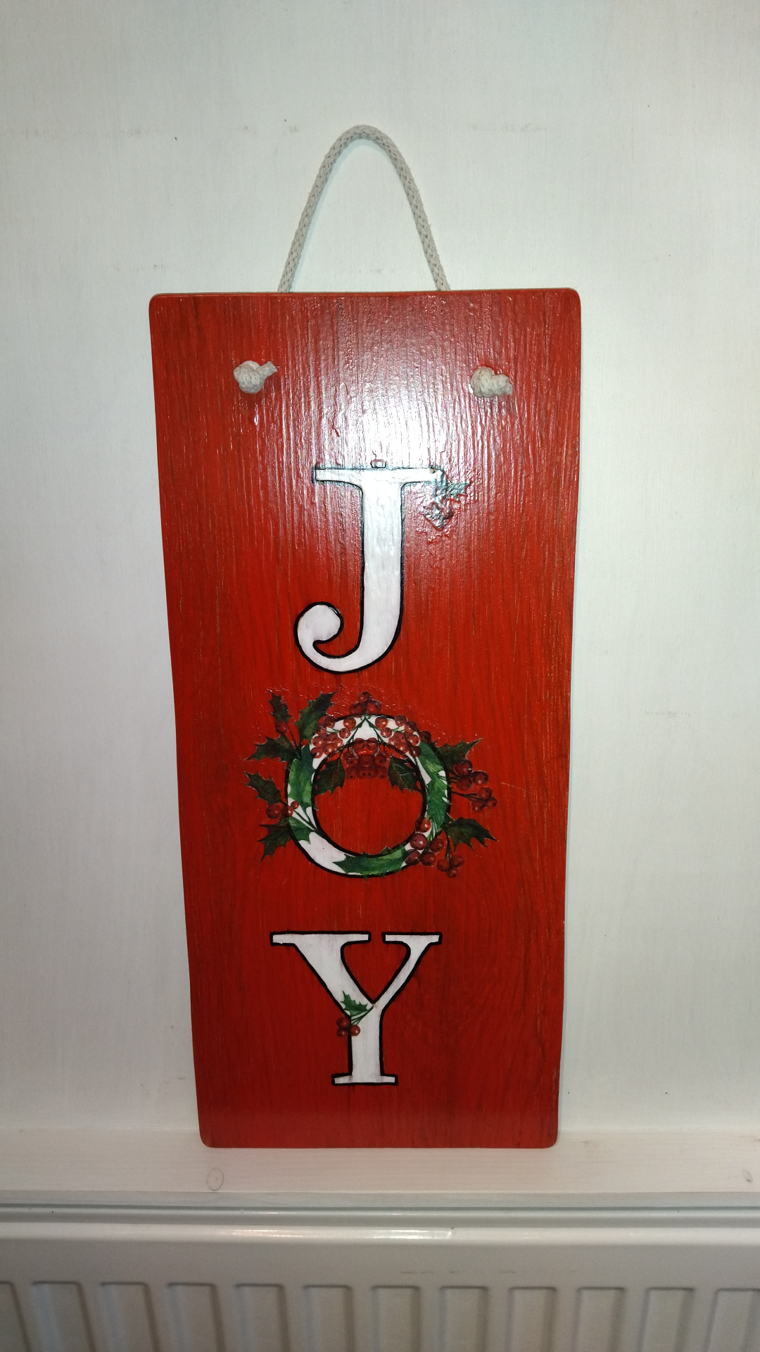 Maradék padlólapból készült, kézzel festett ajtódísz.