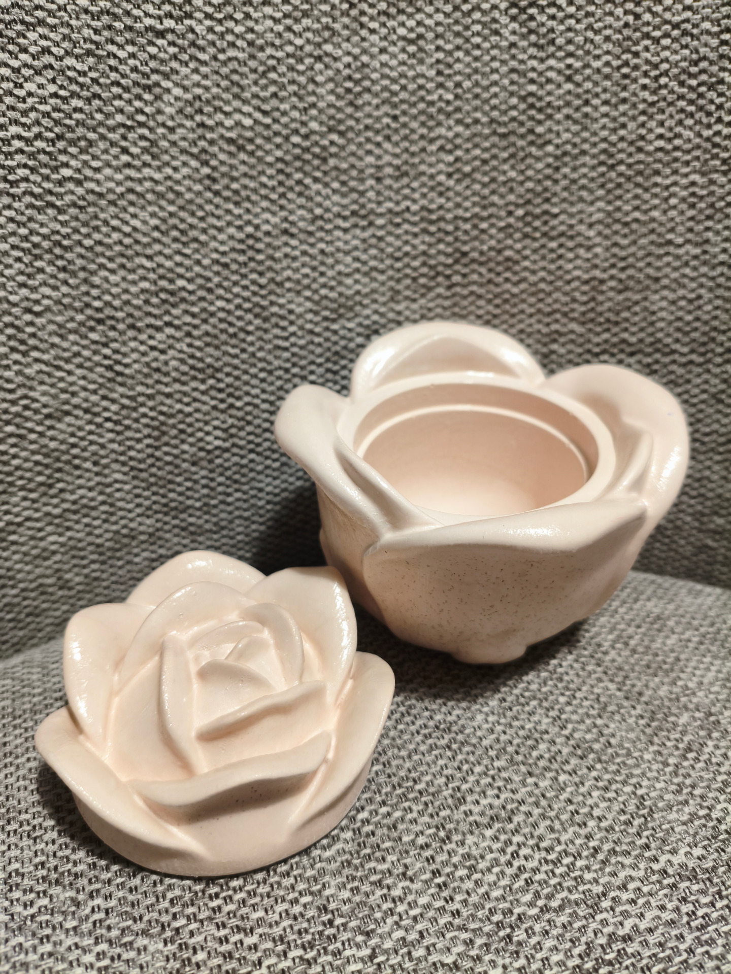 Kerámiagipszből készült, egyszínű kisebb tároló ékszereknek, apróbb tárgyaknak. Teteje levehető.